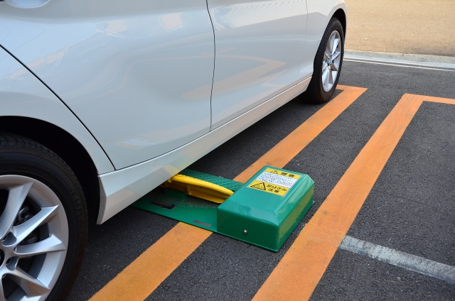 空いているスペースに車を停めます。このとき、車両がロック板をしっかり越える位置に駐車します。